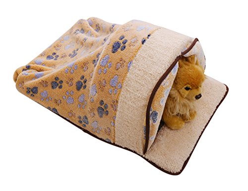 You can read main features below to know more about Freerun Warm Soft Fleece Pets Bed Sleeping Bag Burrow Cuddle Cat Dog Cave with Curtain (Brown, L).